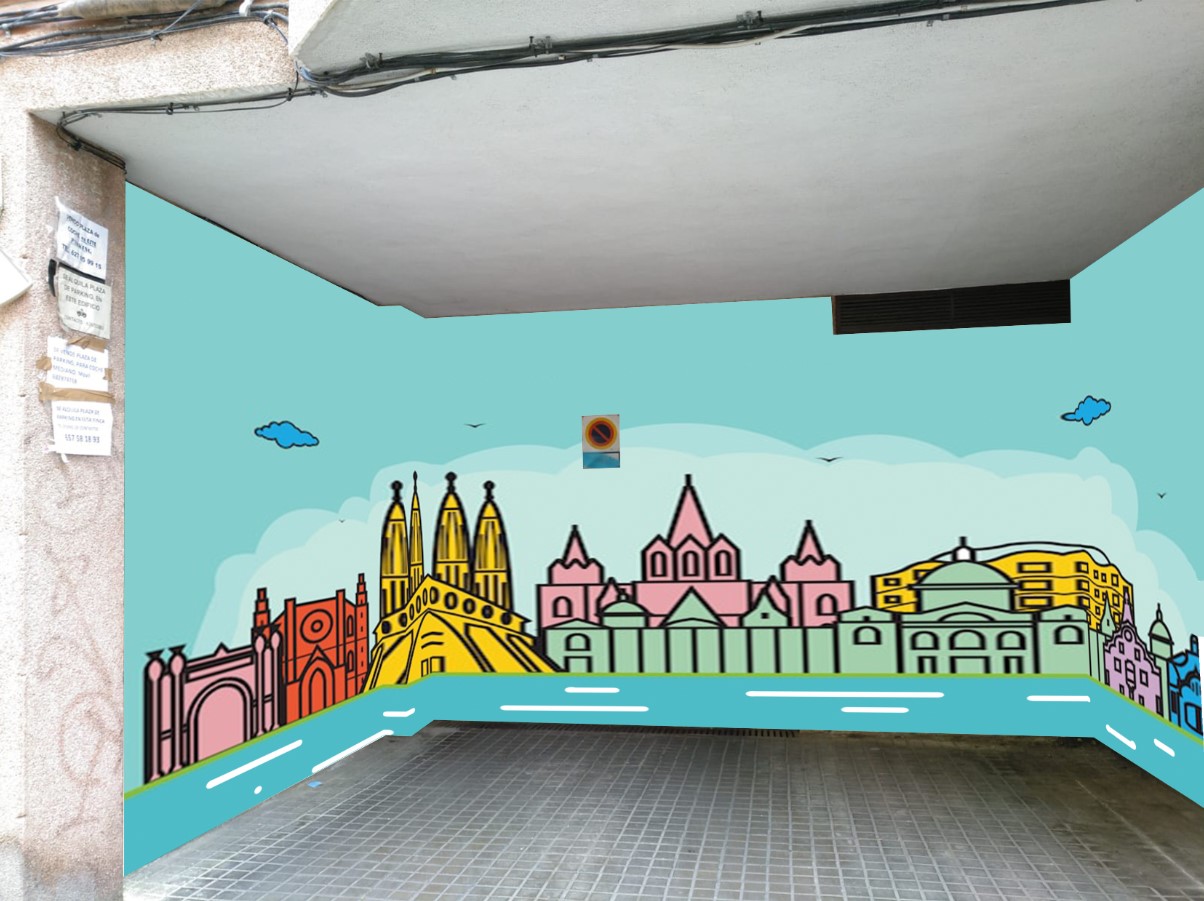 Parkings decorados con SKYLINE BARCELONA