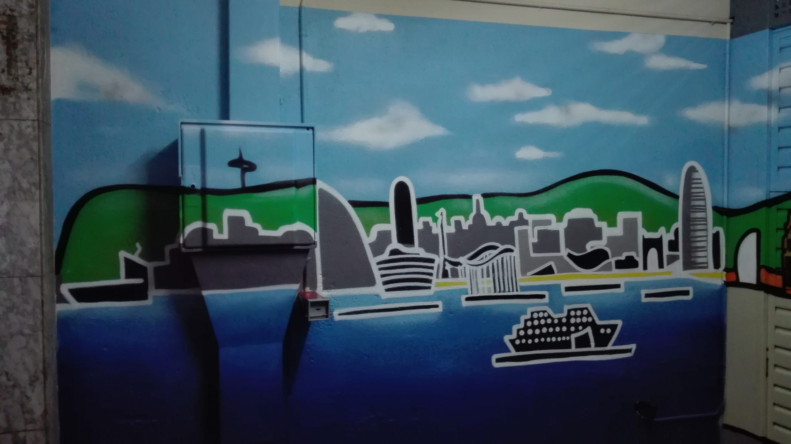 Trabajos realizados por ARTEEXTRA de decoración garaje con skylines de Barcelona